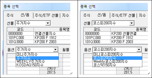 "기초자산명"+"선물연결"