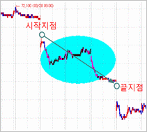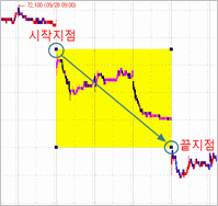 각시작지점과 끝지점은 날짜/시간/가격으로 지정합니다.