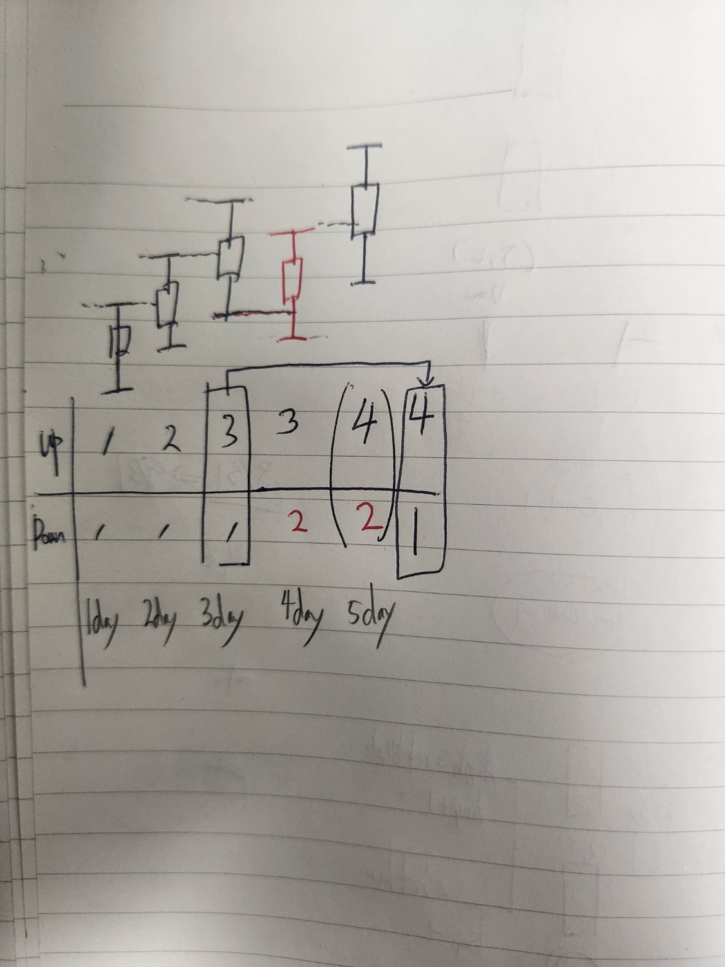즉, 5 day 는 (4,2) 였으나, 4day의 눌림목 확신으로 3day (3,1) 에 이어 (4,1)로